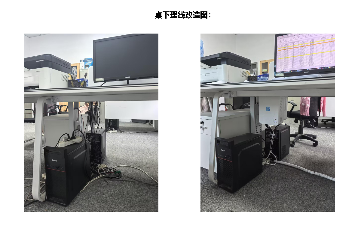 • 线缆规范固定:所有线缆应顺直排列,使用理线器、扎带、线槽等工具绑扎成束,避免交叉、挤压、拖拽;线缆长度应适中,避免多余线缆堆积,桌面线缆可使用桌面理线器收纳,桌下线缆可使用线槽、理线盒隐藏。