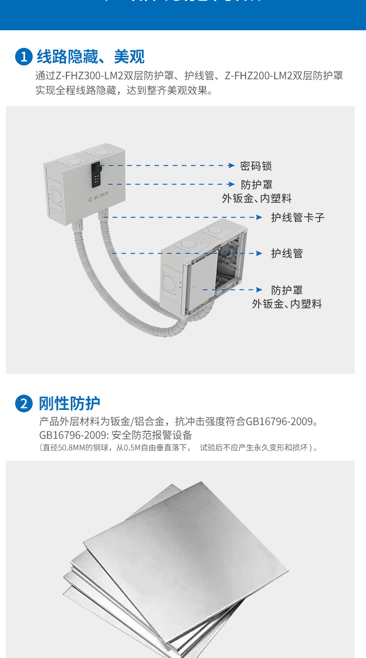 刚性防护三代大厅线路管理器是针对金融机构、非金融行业、企事业单位的(公共场所自助设备及加钞间)线路形象、安全、管理等问题的刚性防护解决方案产品;大厅自助设备的防护主要有:插座或网口防护、中间线路防护、自助设备接口防护等;有效解决线路及接插件(插座、网口、设备接口等)安全隐患及形象问题。